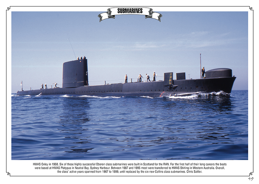 The book includes superb colour photography and a description of the current Australian Naval Fleet, supported by older images that highlight the RAN’s growth in size and complexity over the last sixty years.