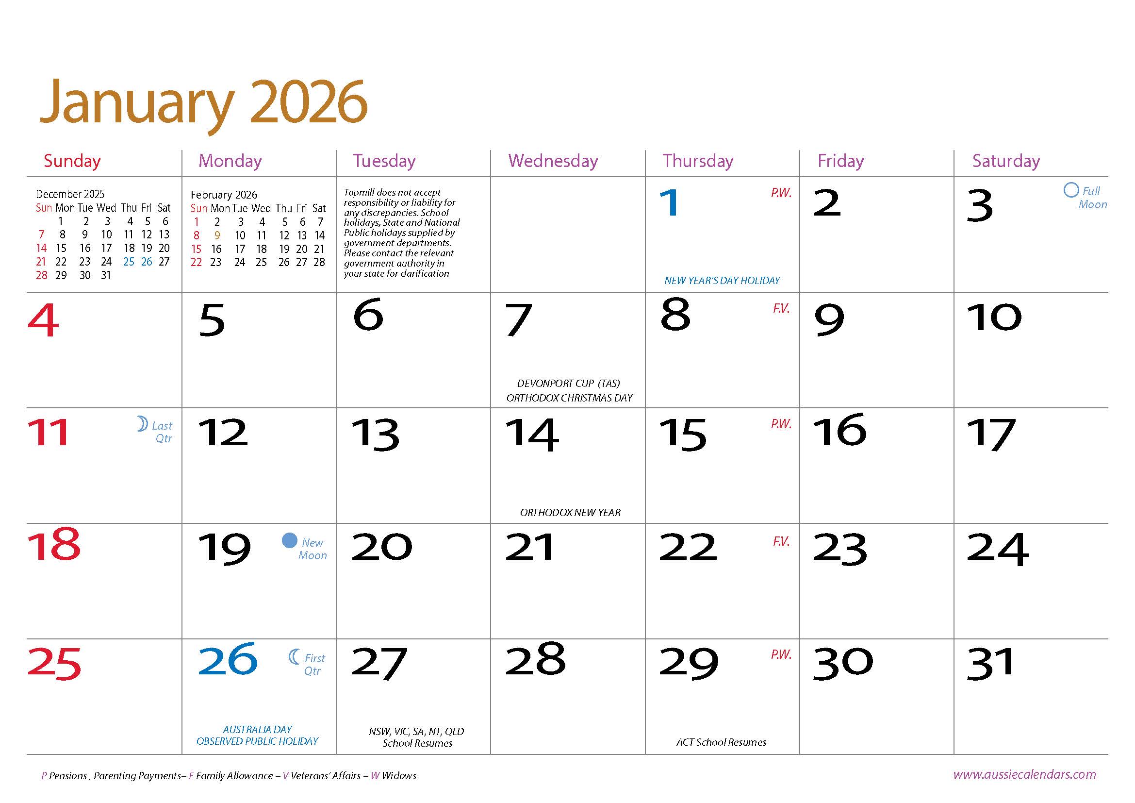 Our comprehensive Australian Date Pad includes Pension Days, Public Holidays, State holidays, School holidays and an additional four months for future planning.